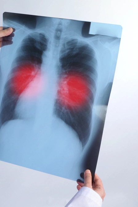 • Для уточнения диагноза выполняется рентген легких или КТ органов грудной клетки. Исследования выявляют очаги инфильтрации.